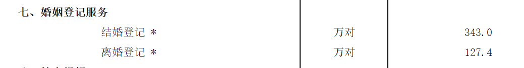 相较而言,今年上半年结婚登记数较去年同期减少49.8万对,离婚登记数同比减少4.3万对。
