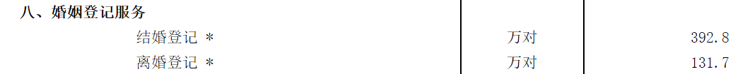 而2023年上半年,全国共办理结婚登记392.8万对,办理离婚登记131.7万对。