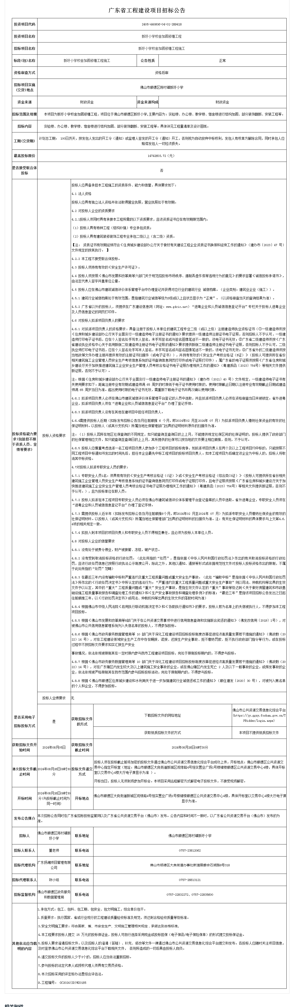 顺德区陈村镇新圩小学校舍加固修缮工程施工招标公告