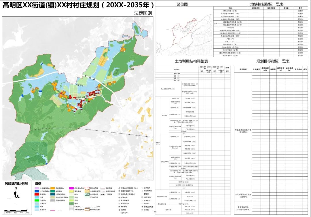 高明区新发布的乡村规划模版,参考上级有关规定,详细罗列了各村在规划时候需要填写、统计的内容,其中包括土地使用、规划控制线、公共服务设施、市政交通基础设施、建设用地控制指标、主要规划指标和引导建议等,内容丰富度对比以前有了质的提升。