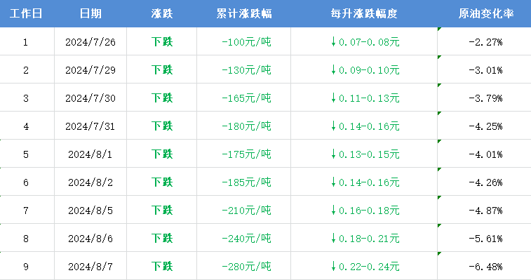 调价日期:8月8日24时(明晚12点)