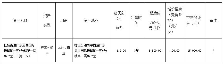 南海桂城街道广东夏西国际橡塑城一期6号楼第一层A607之一(第二次)物业租赁项目