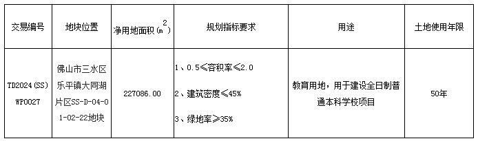 五、有意参与竞买者可于2024年8月9日后登录网上交易系统下载TD2024(SS)WP0027地块的《佛山市三水区国有建设用地使用权网上拍卖出让文件》。