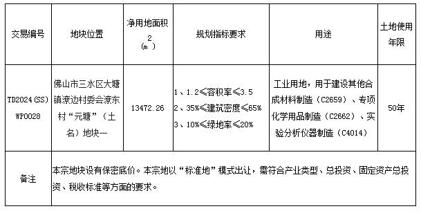 五、有意参与竞买者可于2024年8月9日后登录网上交易系统下载TD2024(SS)WP0028地块的《佛山市三水区国有建设用地使用权网上拍卖出让文件》。