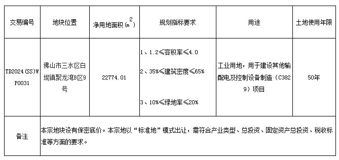 五、有意参与竞买者可于2024年8月9日后登录网上交易系统下载TD2024(SS)WP0031地块的《佛山市三水区国有建设用地使用权网上拍卖出让文件》。