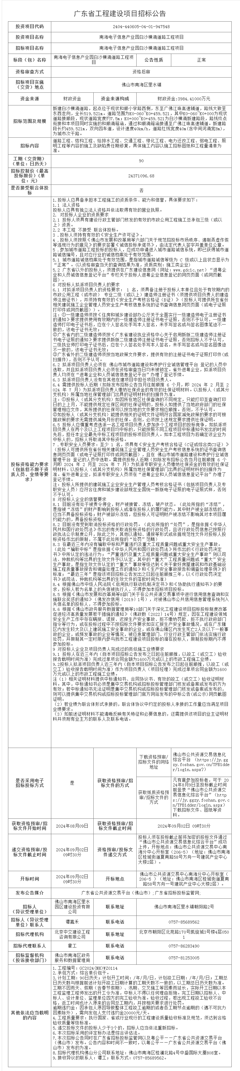 南海电子信息产业园白沙横涌道路工程项目招标公告