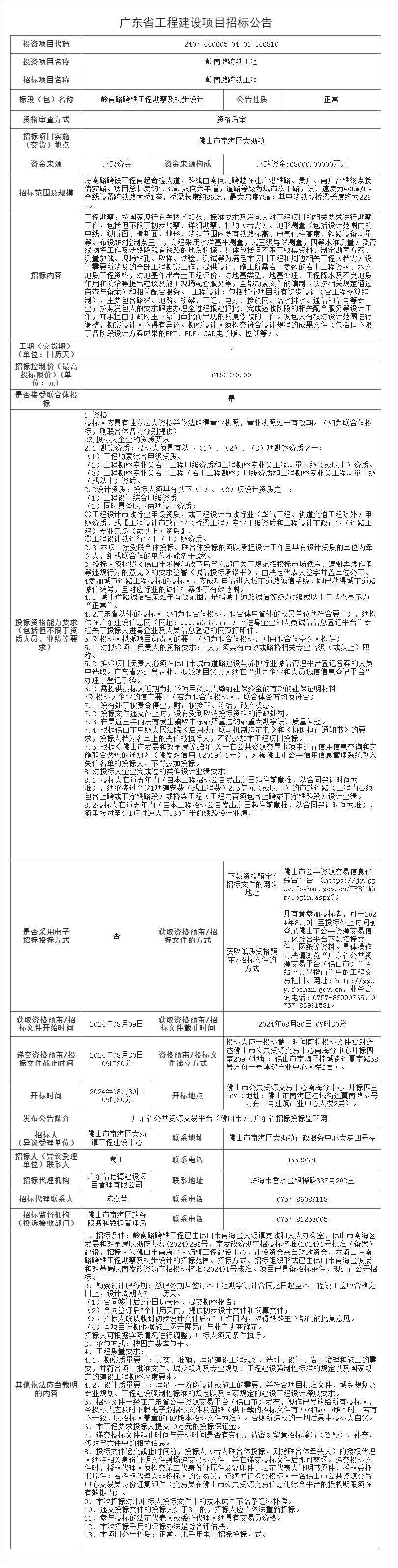 禅城岭南路跨铁工程勘察及初步设计招标公告