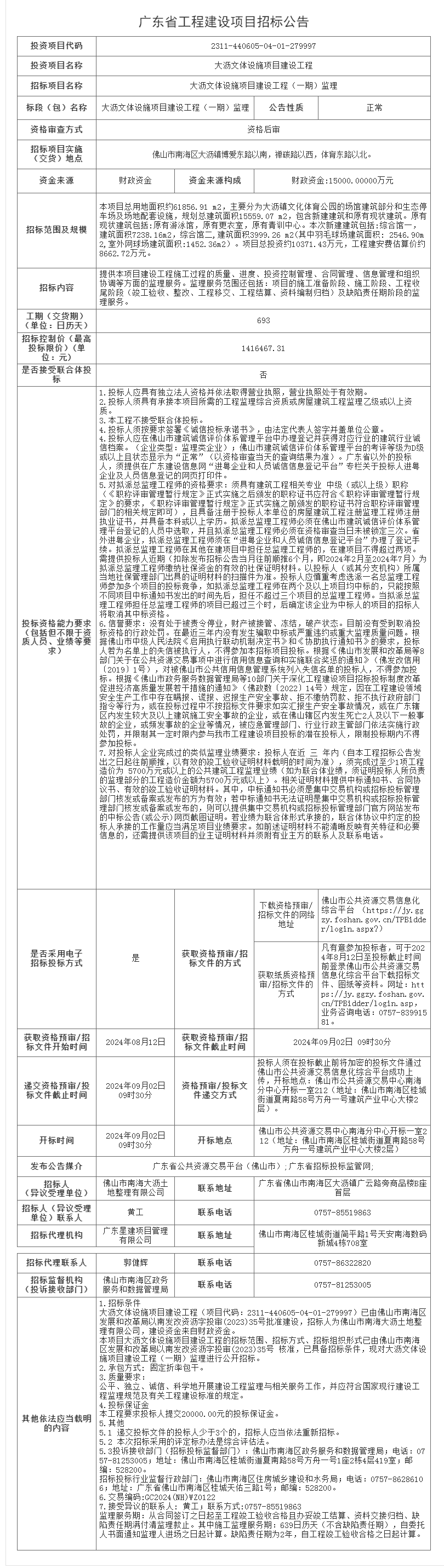南海大沥文体设施项目建设工程(一期)监理招标公告