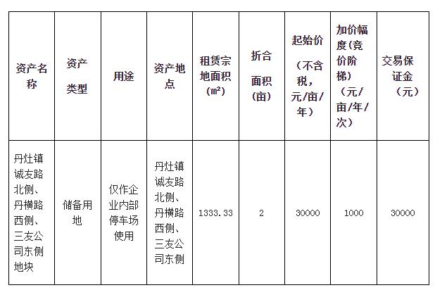 佛山市南海区丹灶镇公共资源交易所受佛山市南海区丹灶产业开发集团有限公司的委托,现就丹灶镇诚友路北侧、丹横路西侧、三友公司东侧地块租赁项目采用网上竞价方式进行租赁,欢迎合格的竞价意向人前来报价。