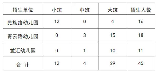 民族路幼儿园、青云路幼儿园、龙汇幼儿园