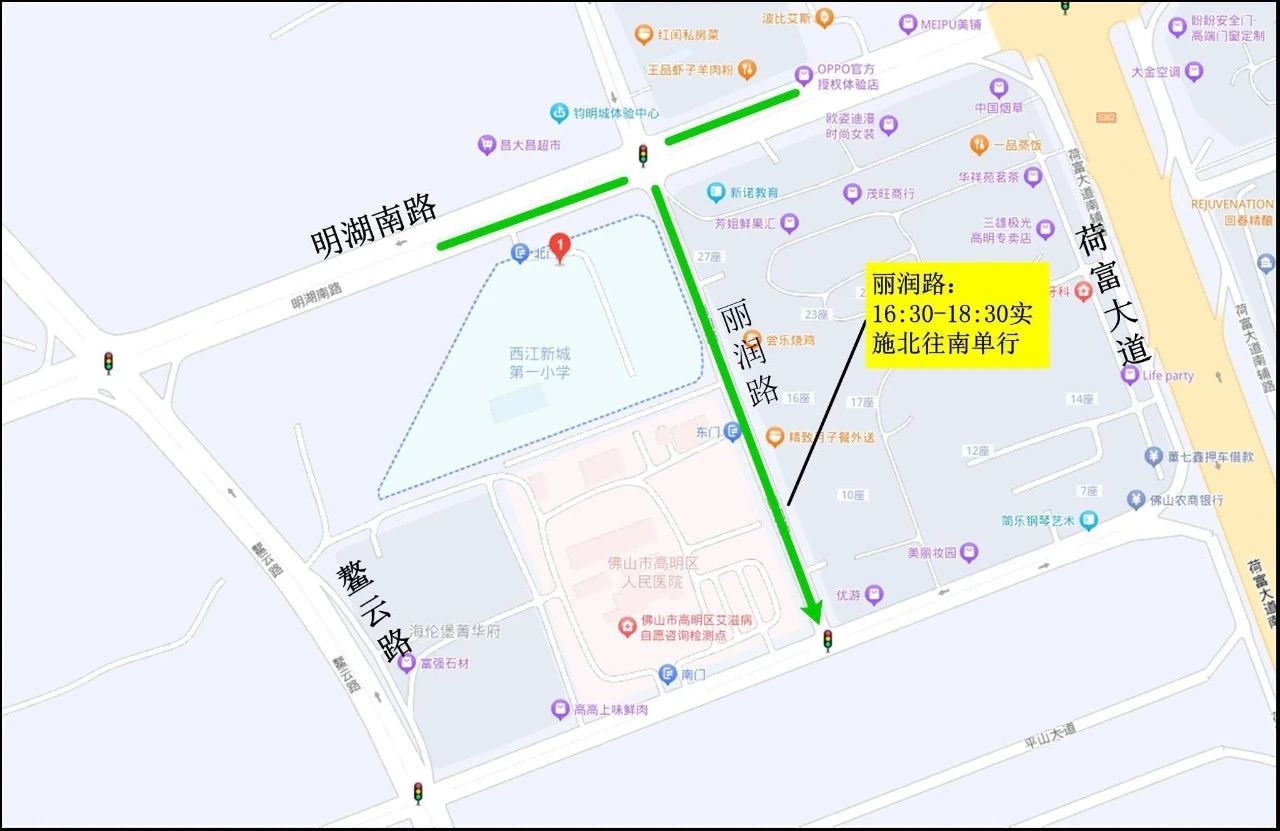 为加强道路交通安全管理,进一步优化行车秩序,减少交通拥堵,增加交通管理工作的透明度,根据《中华人民共和国道路交通安全法》有关规定,经区政府同意,佛山市公安局高明分局决定调整西江新城第一小学高峰期限时段单向通行交通管制措施,现将有关规定向社会通告如下: