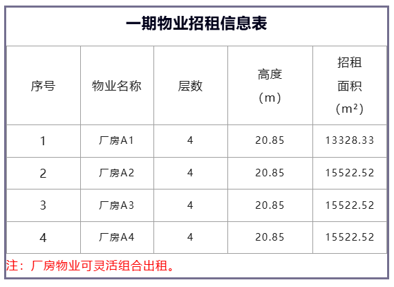 项目一期已建成4栋四层标准厂房,建筑面积约6万㎡,基础配套设施完善,配套公共道路、下水管道、路灯、电房、电梯及消防设备等设施。