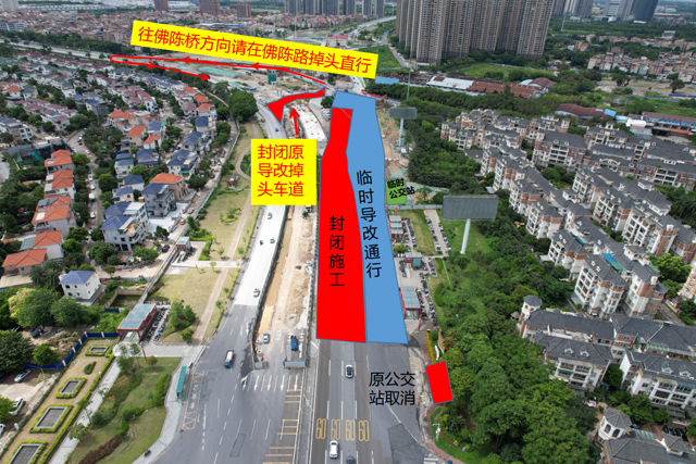 预计施工时间为2024年8月21日至2024年12月31日。期间将开通临时导改路通行,往禅城方向车辆需在佛陈路掉头车道掉头后沿匝道直行汇入主路上佛陈桥。为保障道路安全,原登洲公交车站将向南迁改150m。
