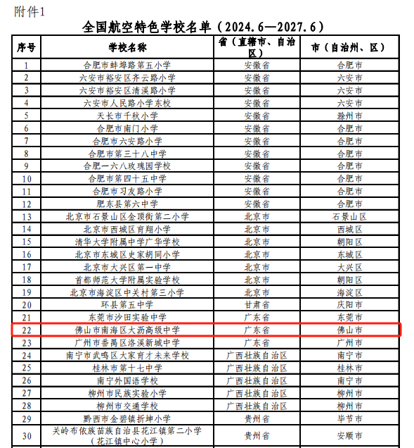 据了解,中国航空学会开展全国航空特色学校评定工作,旨在鼓励和支持中小学建立航空科普阵地,在中小学校科普活动中系统化地普及航空科技知识,培养热爱航空、热爱国防、热爱祖国的后备人才。此前佛山市已有2所学校获评,分别是南海区里水镇中心小学和南海区狮山石门高级中学。
