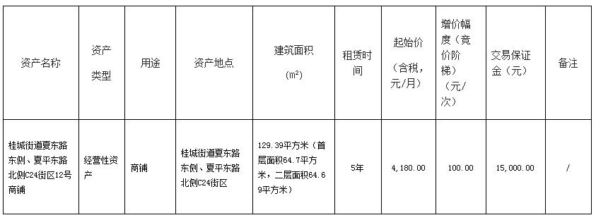(4)履约保证金:按竞得价的三个月租金(取整)收取,承租方应在签订合同之日起一个月内向出租方交纳。