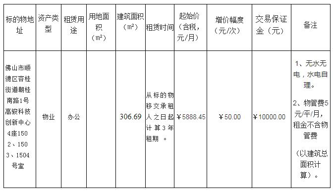 佛山市顺德区容桂街道红旗社区居委会红旗中路77号之一租赁权竞投