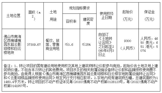 佛山市南海区国有建设用地使用权网上挂牌转让公告
