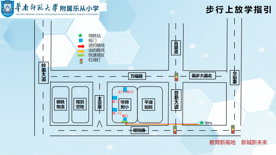 华南师范大学附属乐从小学(以下简称乐从华师附小)将于9月开学,为保障开学期间全体师生的交通安全出行,有效缓解和改善周边交通安全的现状,打造“即停即走、高效接送”的有序接送模式,结合学校的实际,特制定本交通指引,旨在引导大家合理选择出行方式,共同营造安全、有序、高效的交通环境。