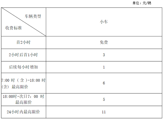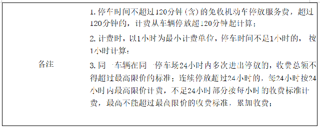 荷城街道(含西江产业新城)公园、广场配套停车场机动车停放服务收费标准