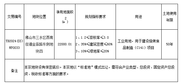 五、有意参与竞买者可于2024年8月23日后登录网上交易系统下载TD2024(SS)WP0033地块的《佛山市三水区国有建设用地使用权网上拍卖出让文件》。