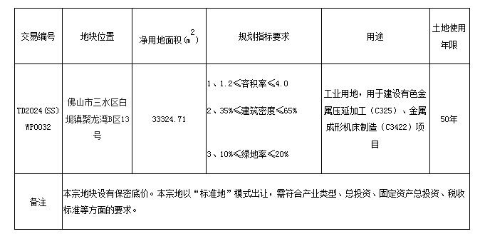 五、有意参与竞买者可于2024年8月23日后登录网上交易系统下载TD2024(SS)WP0032地块的《佛山市三水区国有建设用地使用权网上拍卖出让文件》。