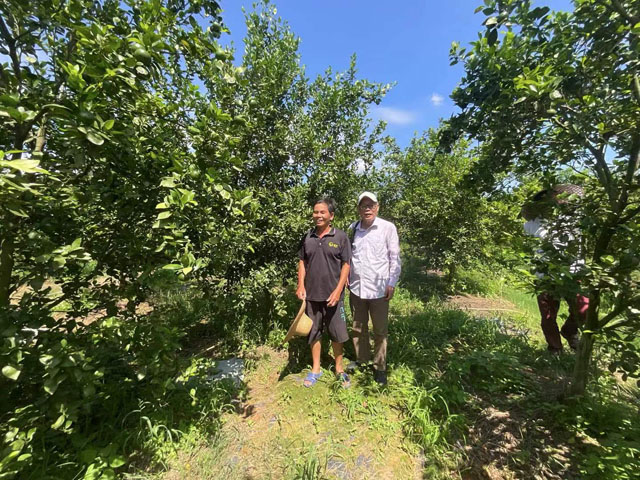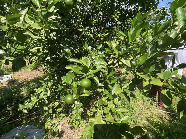 8月24日出伏 。下午时分,陆叔带佛山考察人员一行到他的果园参观。但见陆叔果园枝繁叶茂果满枝头,陆叔喜上眉梢。他说3月那时雄哥亲自落田指导他施肥作业,十多天初见成效。如今不觉过了5个月,他的果园同村里其他未有施过沼肥的果园疏落成鲜明对比。经销商近日来预购他的皇帝柑,预计收入可观。科技支农增产增收,几个月前的放胆一博,大约2个月后硕果累累,迎来丰收。