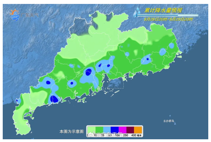 其中28-29日广东大部市县雷雨明显,局部雨势强烈,并伴有8级左右雷雨大风、短时强降水等强对流天气。