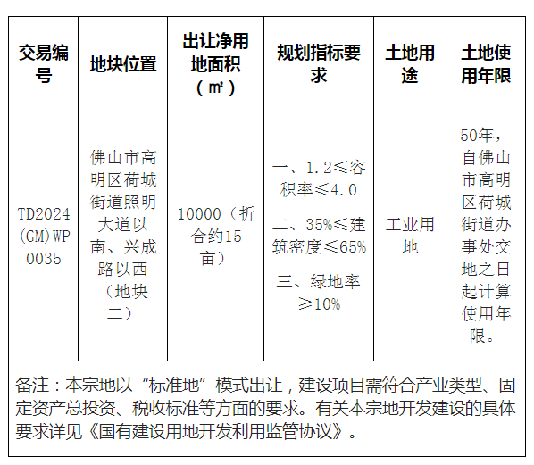 本块地其他规划指标和要求按《高明区土地使用规划条件》(佛规明设函〔2024〕0095号)相关规定执行。