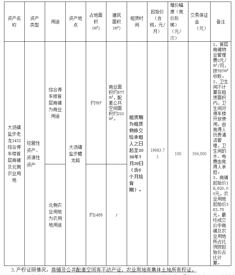 3.产权证照情况:商铺及公共配套空间有不动产证,农业用地有集体土地所有权证。