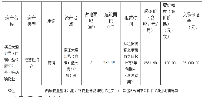 南海大沥镇横江大道17号(自编:盐公房532号)等两项物业租赁公告