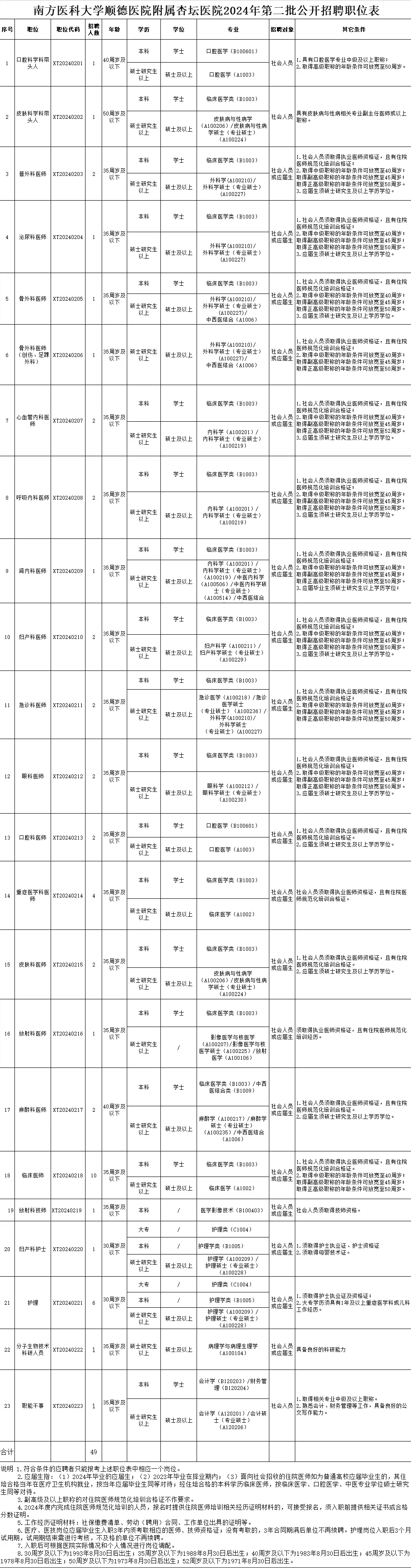 南方医科大学顺德医院附属杏坛医院位于杏坛镇南国西路338号,建筑面积近4万平方米,目前已发展成为一所集医疗、预防、教学、科研、康复为一体的二级甲等综合性医院,爱婴医院,广东省普通高等医学院校教学医院,广东省佛山市白内障手术特约医院。因工作需要,拟面向社会公开招聘49名非编工作人员。现将有关事项公告如下: