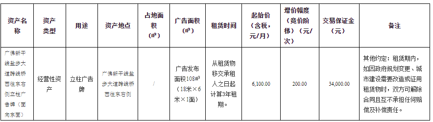 南海大沥镇广佛新干线盐步大道跨线桥西往东右侧立柱广告牌(面向东面)招标公告
