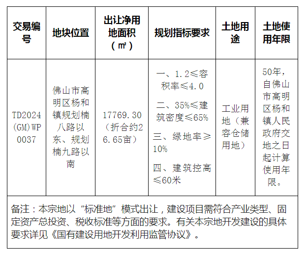 五、有意参与竞买者可于2024年8月30日后登录网上交易系统下载该地块的《佛山市高明区国有建设用地使用权网上拍卖出让文件》。
