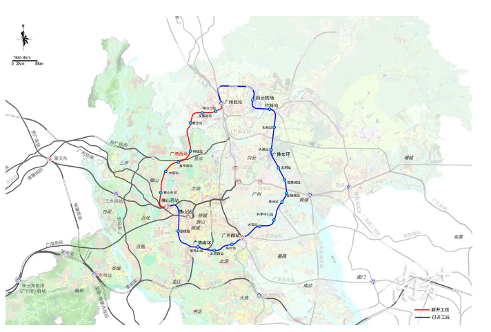 广佛西环项目位于广州市西北部、佛山市东北部,是珠三角城际轨道交通网重要组成部分,也是联系广佛中心城区、佛山副中心、花都城区等区域的都市圈快线,具备路网中“串组团、衔西北”的地缘纽带功能。