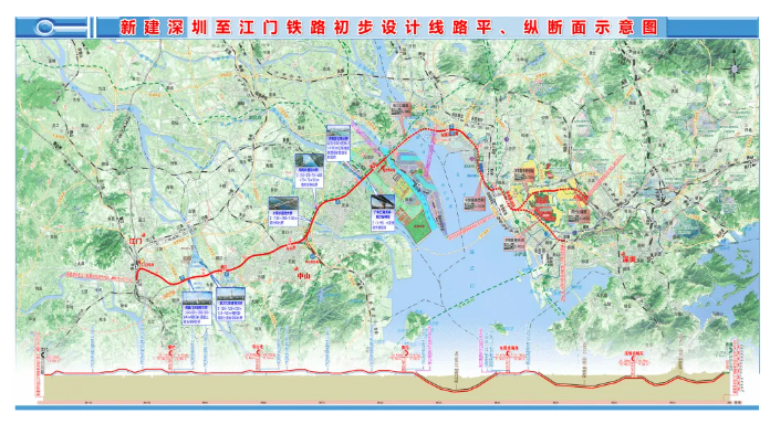 线路正线从规划的深圳枢纽西丽站引出,经深圳宝安、东莞滨海湾、广州南沙、中山至江门,正线全长116公里,建设工期5.5年(不含先开段)。