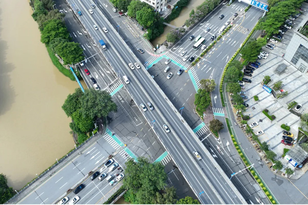 通过调整放行方案、配时优化、设置待行区和 “借道左转”一系列举措,车辆排队长度缩短一半,原本驾驶员可能需要等两轮红绿灯,现在只需要等一轮红绿灯即可通过,路口总体通行效率明显提高。