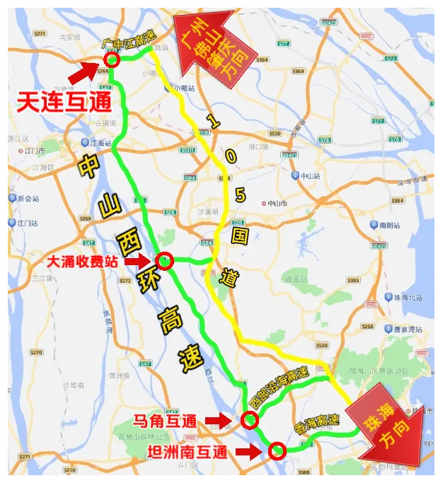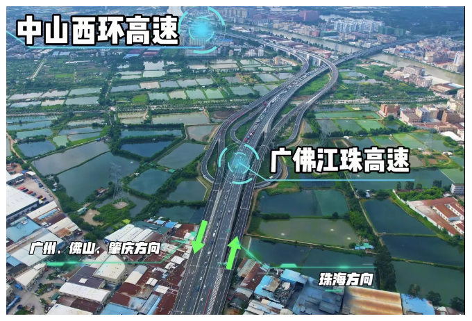 至此,中山西环高速与广佛江珠(广中江)高速实现全面互联互通,也标志着中山西环高速公路全部开放交通。