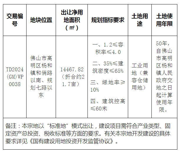 五、有意参与竞买者可于2024年9月9日后登录网上交易系统下载该地块的《佛山市高明区国有建设用地使用权网上拍卖出让文件》。