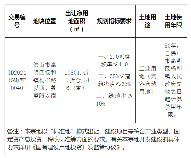 九、自本次公告起至网上挂牌截止期间,如有关于本宗地竞买文件的修改、澄清、说明等将通过网上交易系统以及佛山市南海区人民政府网发布,请有意参与竞买者密切留意。其它未尽事宜,详见本宗地的网上挂牌出让文件。