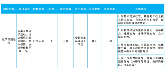 2、佛山市南海区上善教育投资有限公司招聘如下: