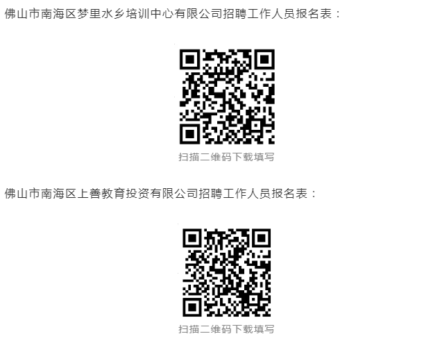 3、报名所需资料:《佛山市南海区梦里水乡培训中心有限公司招聘报名表》《佛山市南海区上善教育投资有限公司招聘报名表》,身份证、毕业证、学位证、学历证书电子注册备案表(仅限学信网查询下载打印)以及报考职位所需的证件和资料(如:户口簿、驾驶证等)