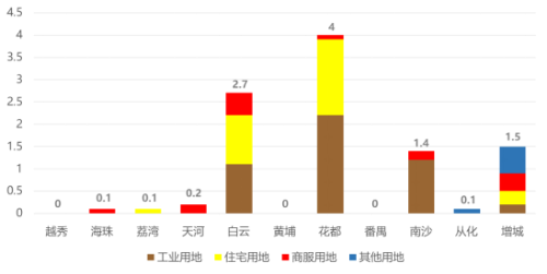从空间分布看,新增入库的10平方公里用地,主要分布在花都、白云、增城、南沙区。其中,位于重点功能片区用地3.3平方公里,涉及环南昆山—罗浮山县镇村高质量发展示范区(广州)板块、广州空铁枢纽创新带、白云新城、白云湖数字科技城、广州东部枢纽中心商务区、明珠湾起步区、庆盛科技创新产业城等重点功能片区。