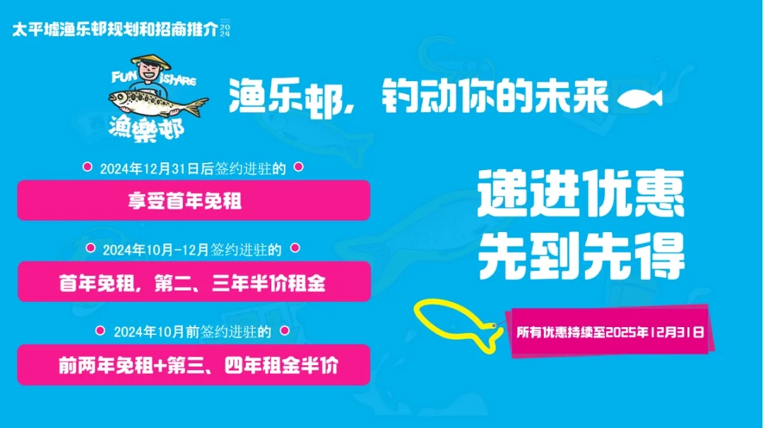 ✅2024年10月至12月签约进驻的首年免租,第二、三年半价租金
