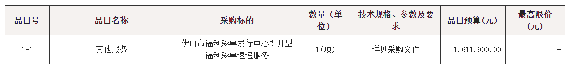 采购包1(佛山市福利彩票发行中心即开型福利彩票速递服务):