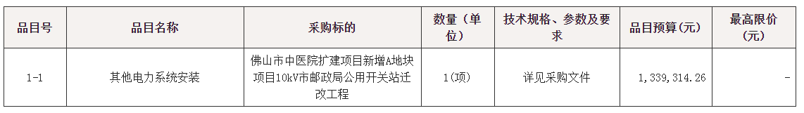 佛山市中医院扩建项目新增A地块项目10kV市邮政局公用开关站迁改工程招标公告