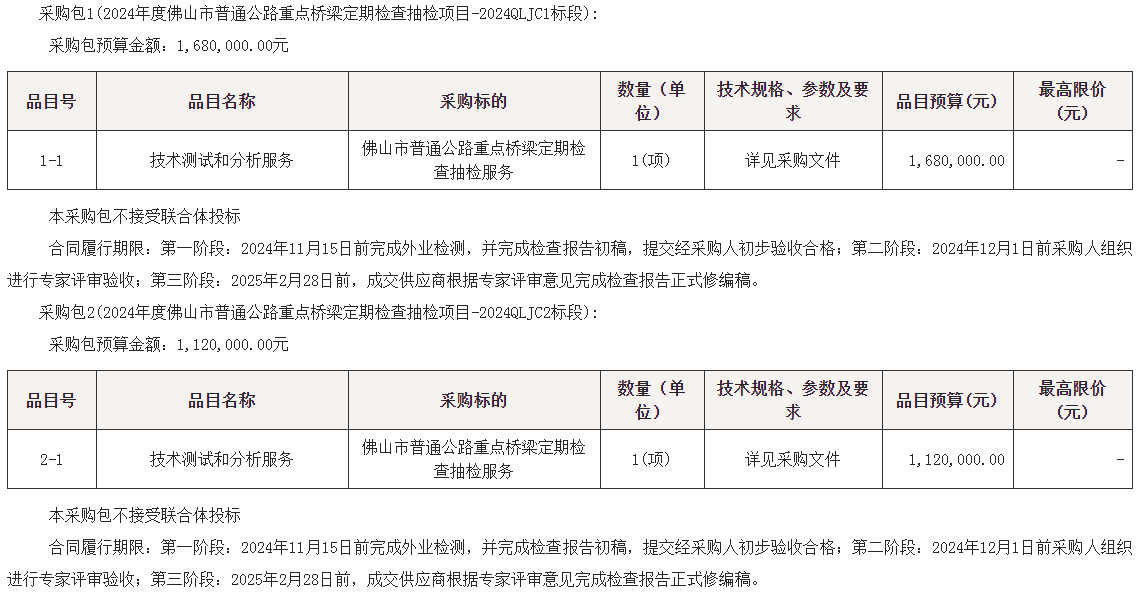 2024年度佛山市普通公路重点桥梁定期检查抽检项目招标公告