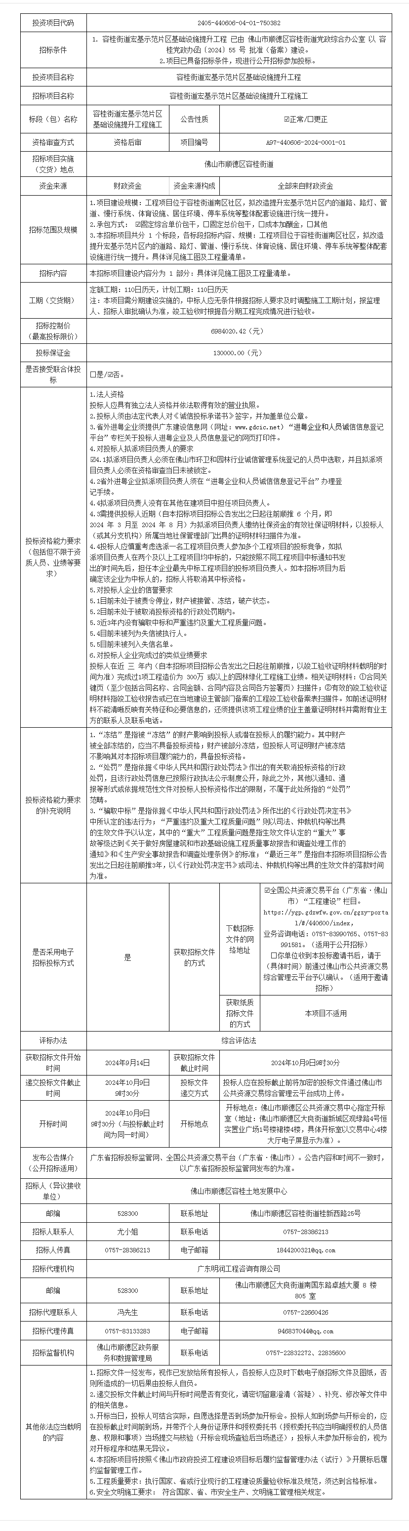 顺德容桂街道宏基示范片区基础设施提升工程施工招标公告