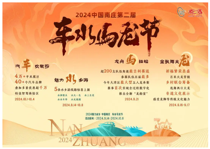 以聚焦“绿色智能,领秀未来”为主题,由佛山市禅城区人民政府指导,佛山市禅城区文化广电旅游体育局和佛山市禅城区南庄镇人民政府全力支持,佛山市新闻传媒中心(佛山传媒集团有限责任公司)主办的2024中国南庄第二届车水马龙节汽车欢乐购将于10月1日-4日在佛山南庄国际会展中心举行。