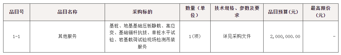 采购包1(基桩、地基基础压板静载、高应变、基础锚杆抗拔、单桩水平试验、岩基载荷试验现场检测吊装服务):