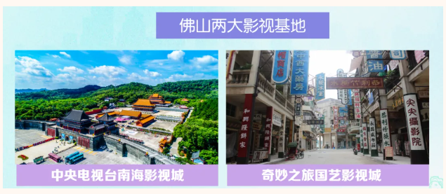二是配套设施完善。佛山两大影视基地——中央电视台南海影视城、奇妙之旅国艺影视城均在南海,拥有超过2万平方米的道具服装仓库,以及上万群众演员资源。核心城区内拥有万豪、保利洲际等豪华酒店配套,各镇内也分别有各类高中低端酒店、餐饮、商业配套,各特色影视取景点到达辖区内镇中心均在20分钟车程左右,能就近充分满足各进驻剧组的生活配套需求。